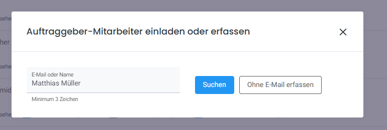 Nachdem Sie Ihren Auftraggeber (Firma) erstellt haben, fügen Sie den Auftraggeber-Mitarbeiter hinzu und laden ihn zur Zusammenarbeit ein.