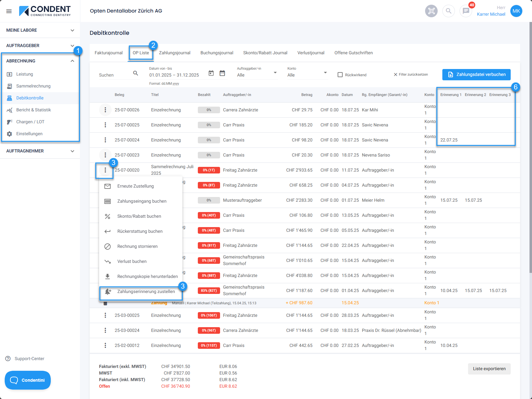 - Navigieren Sie zum Bereich „Abrechnung“ > „Debitorenkontrolle“.