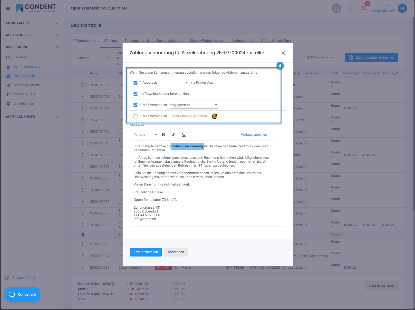 - In der OP-Liste wird das Versanddatum der Erinnerung automatisch angezeigt.