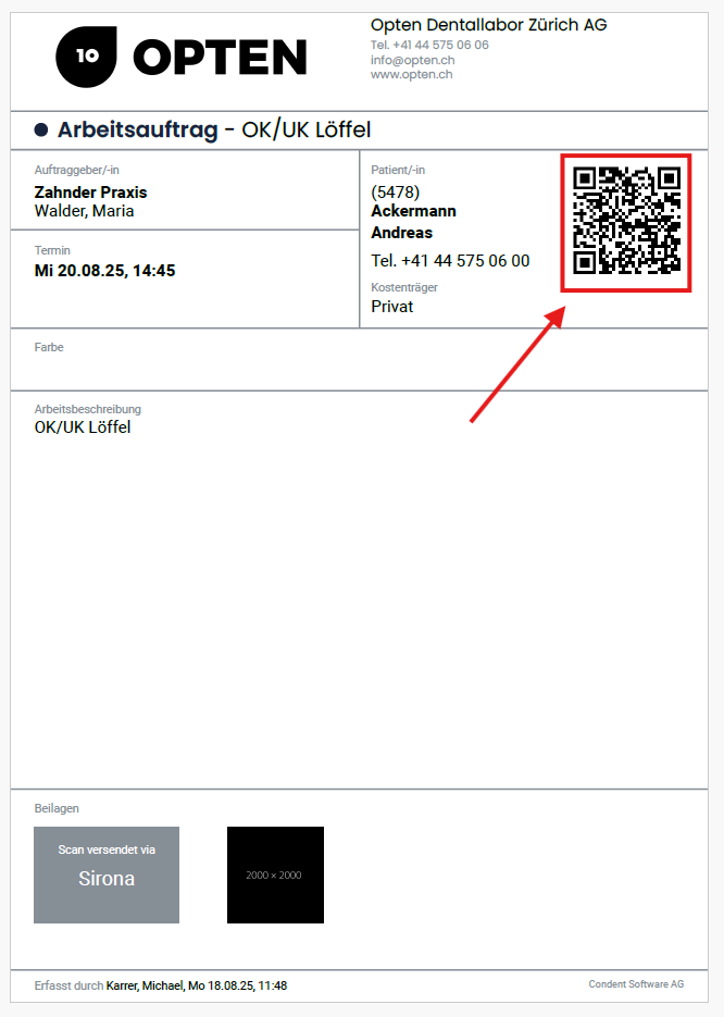 Nehmen Sie den ausgedruckten Laufzettel zur Hand und scannen mit Ihrem Smartphone oder Handscanner den QR-Code auf dem Laufzettel: