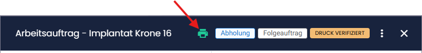 Wenn Sie unsicher sind, ob all Ihre Auftragszettel (Laufzettel) ausgedruckt wurden, können Sie die ausgedruckten Zettel verifizieren, damit danach ein grünes Drucker-Icon angezeigt wird in Condent. So sehen Sie, ob der Laufzettel ausgedruckt wurde und welche Aufträge noch nicht.