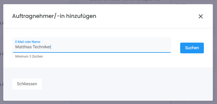 Nun öffnet sich ein neues Popup indem Sie die Person suchen können. Geben Sie somit die E-Mail ein und klicken auf "Suchen".