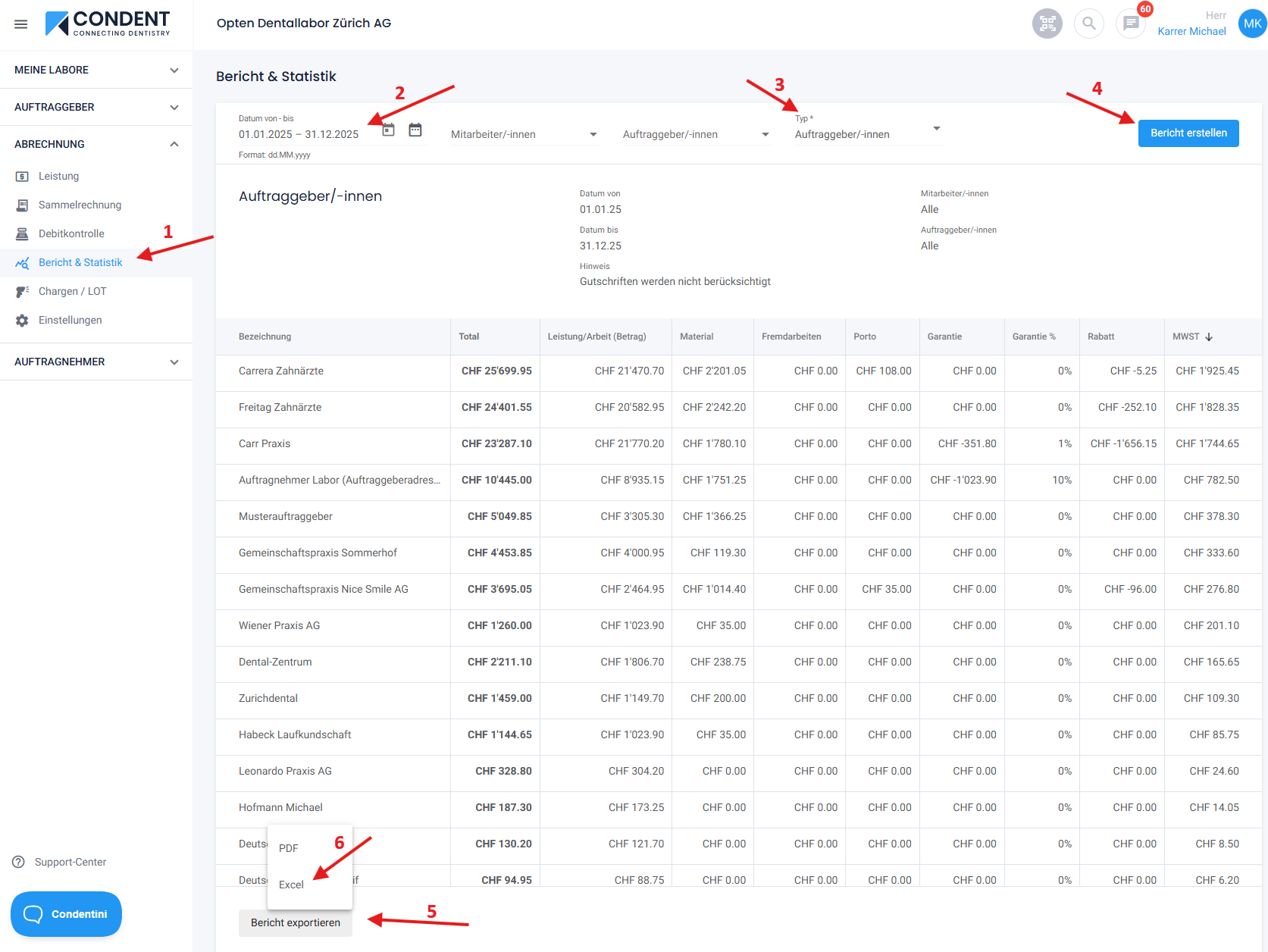 - Klicken Sie unten links auf grauen Button "Bericht exportieren"