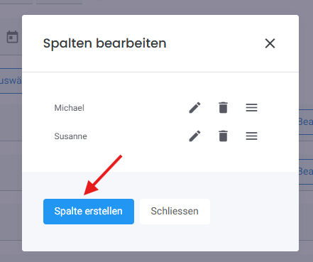 Neu haben Sie die Möglichkeit bei der Agenda einen Tag mit zusätzlichen Spalten zu unterteilen. Zum Beispiel für eine bessere Arbeitsplanung der Mitarbeitenden.
