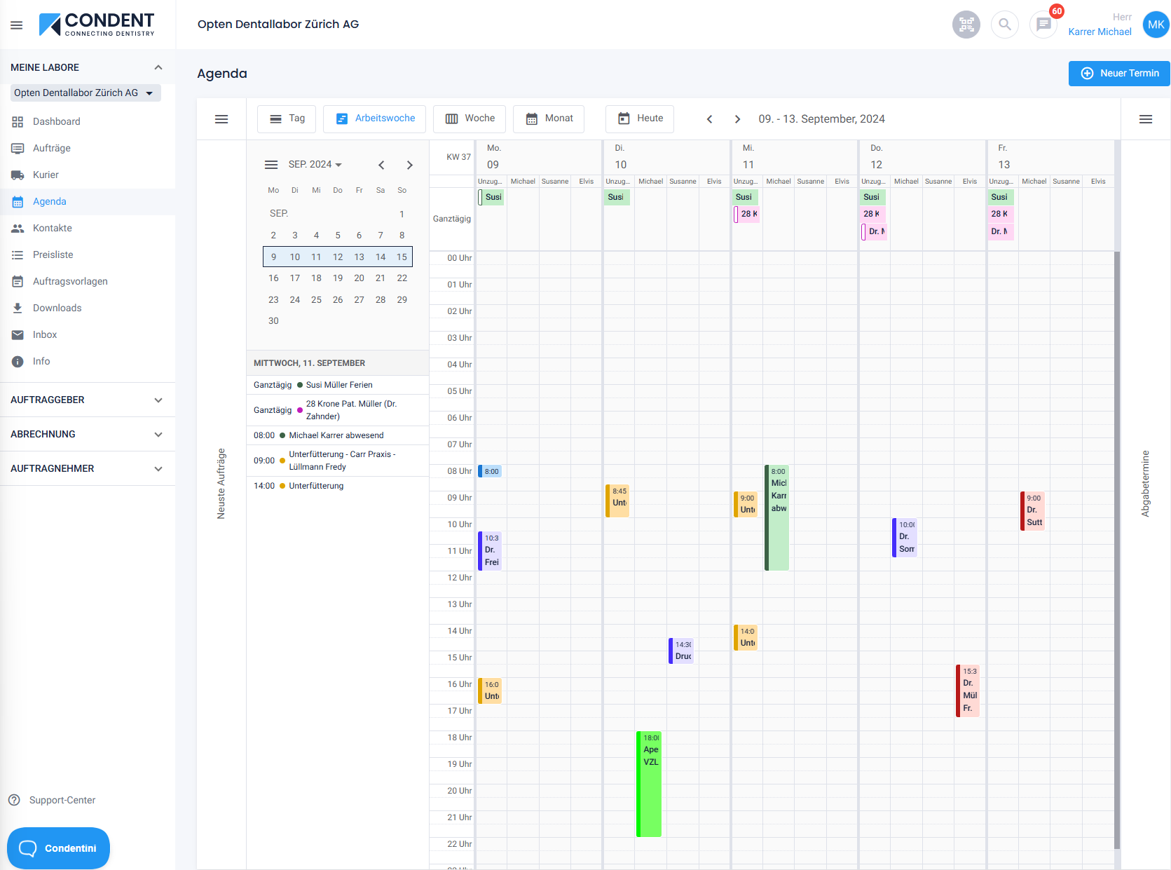 Nun haben können Sie die Termine besser planen. Selbstverständlich können Sie für eine bessere Übersicht auch auf die Tagesübersicht (oben auf "Tag" klicken):