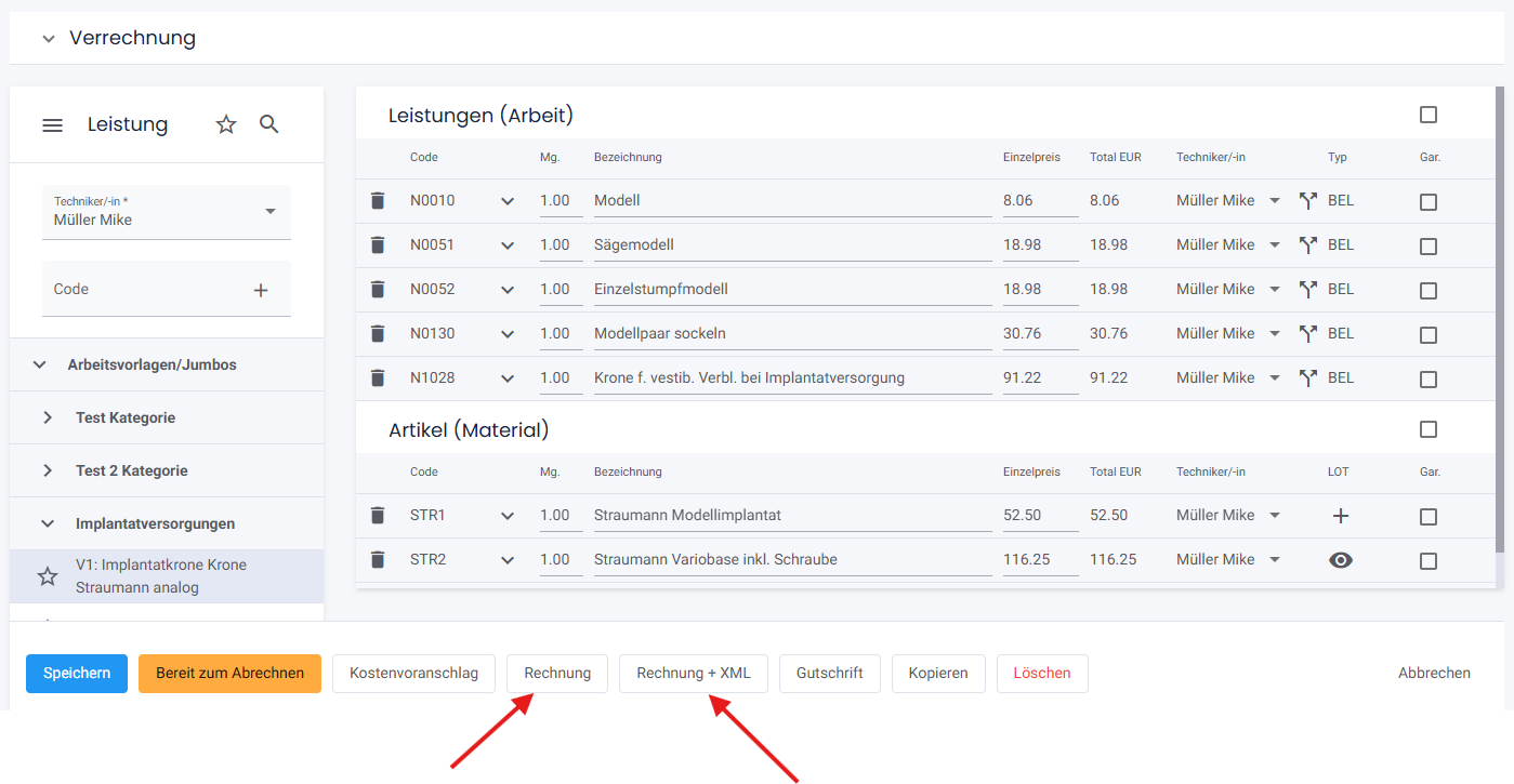 Für Labore ändert sich im Alltag nichts: Leistungen wie gewohnt erfassen, anschliessend einfach auf „Rechnung“ klicken – und Condent erstellt automatisch eine gültige E-Rechnung mit integriertem XML-Anhang nach neuster E-Rechnung-Standard.